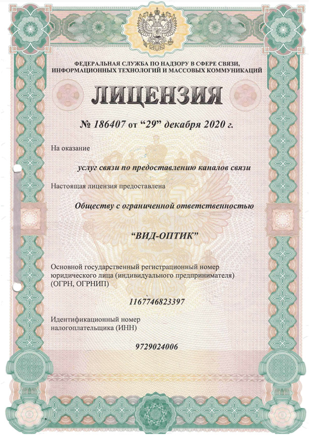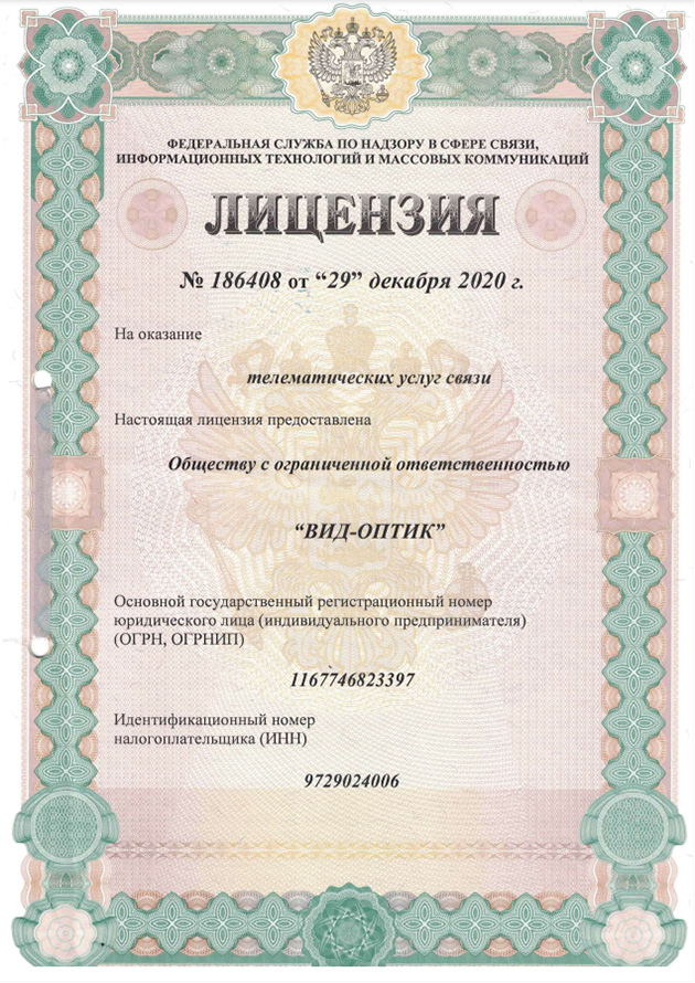 ООО «ВИД-ОПТИК» имеет следующие лицензии в области связи и телематики